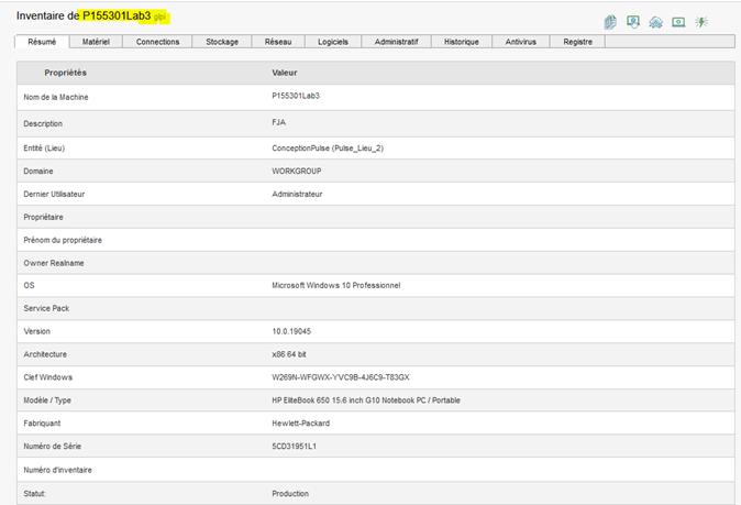 Inventaire d'une machine (GLPI ou ITSMNG) :