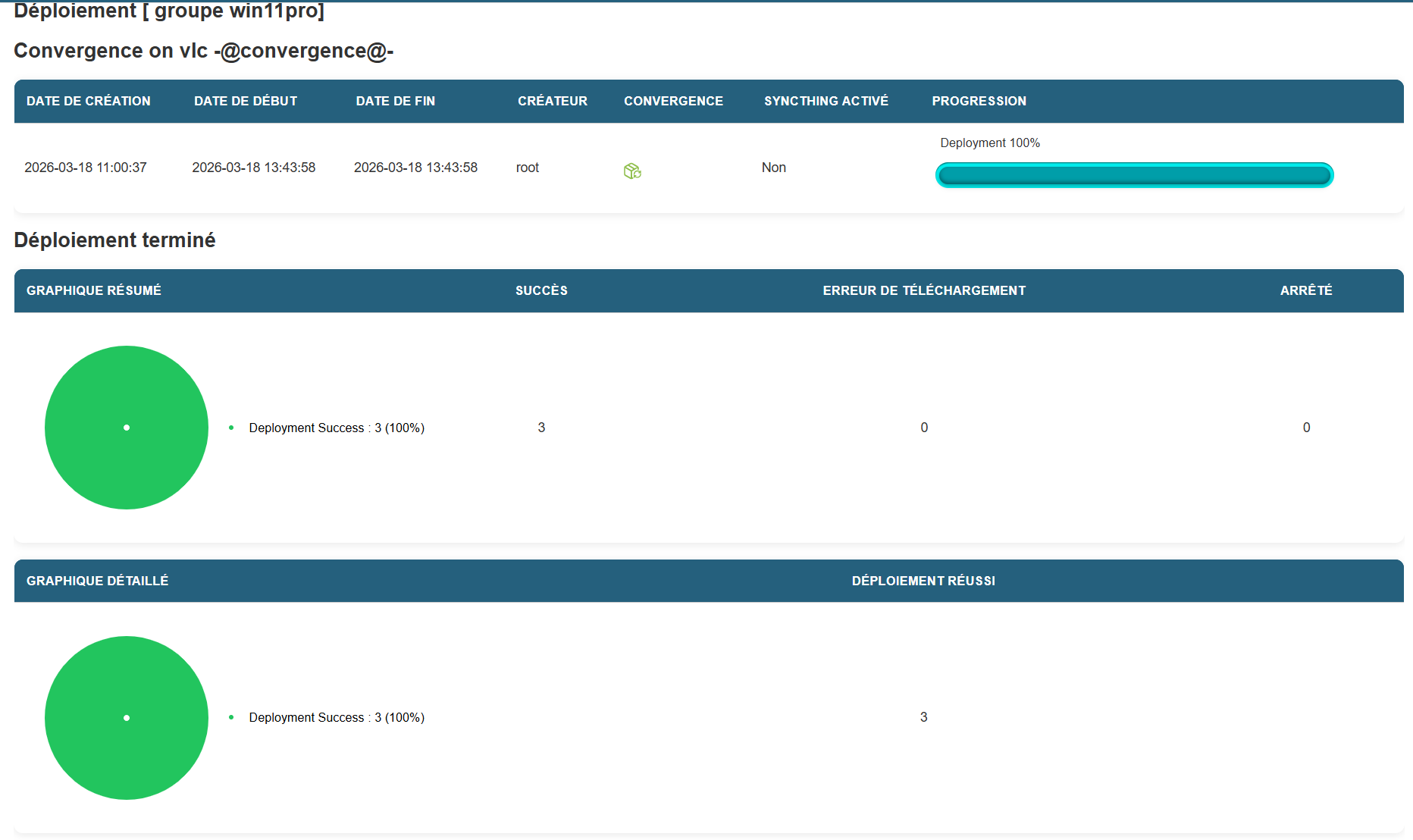 Contrôle du Déploiement planifier :