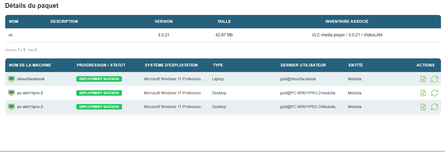 Lancez un déploiement depuis le bouton « Déploiement » sur la barre d’action d’un ordinateur.