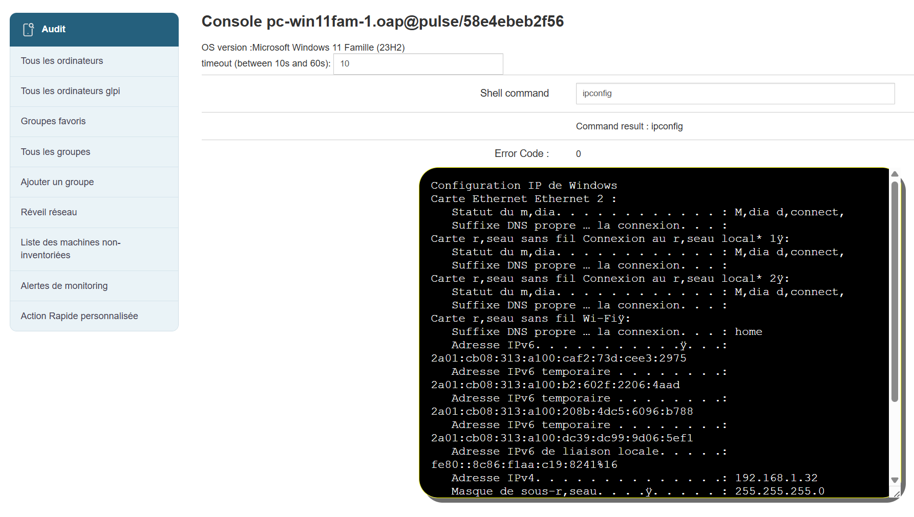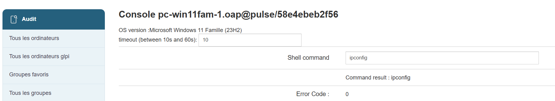 Cette console permet de faire un 1er diagnostique, ou récupérer les informations sur le postes depuis le serveur.