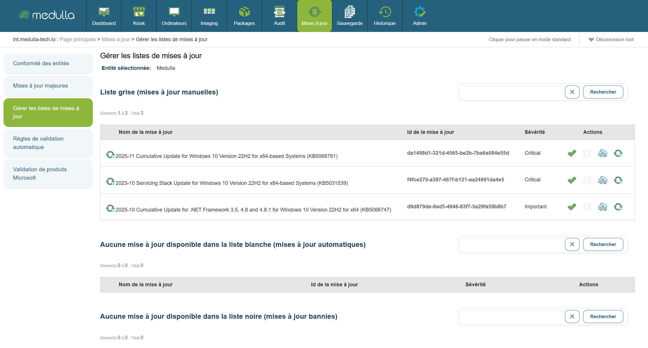 Dans l'interface, les mises à jour vont remonter dans la page "Gérer les listes de mises à jour" :