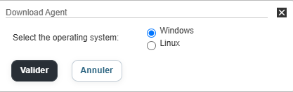 Sélectionnez l'agent Windows ou Linux, puis cliquez sur Valider pour télécharger l'agent concerné.