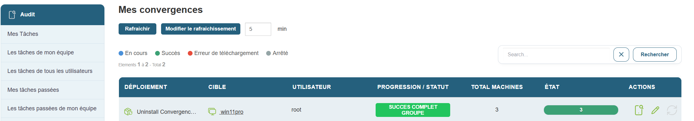 Si vous avez les droits administrateurs, vous pourrez voir l'ensemble des convergences qui ont été programmées par les utilisateurs de Medulla.