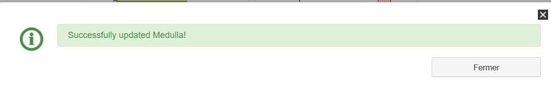 Cliquer sur Fermer et déconnecter vous et reconnectez vous vous dans Medulla pour bénéficier des nouvelles fonctionnalités.
