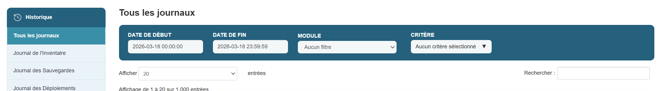 • Le tableau s’actualise pour afficher uniquement les événements correspondant à vos filtres.
