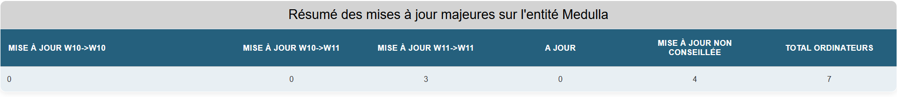 Pour chaque entité, on va avoir les informations des versions de Windows 10 jusqu'à la mise à jour de Windows 10 vers Windows 11.