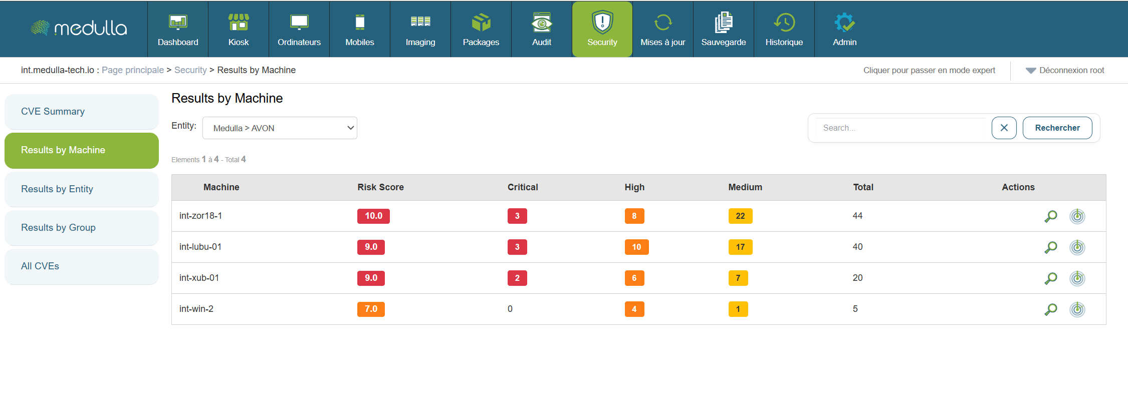 - Les 2 actions de vue détaillée et de lancement de scan sur une entité.