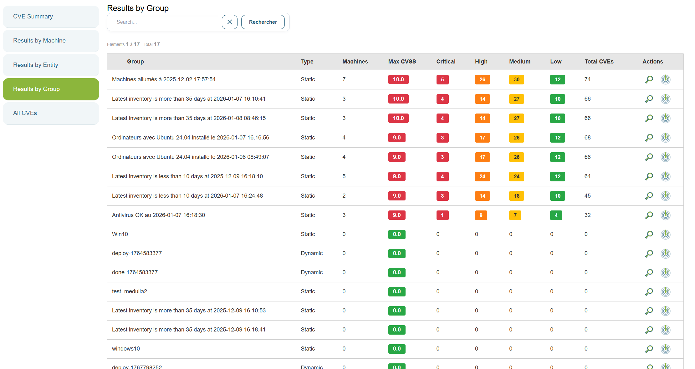 - Les 2 actions de vue détaillée et de lancement de scan sur un groupe.