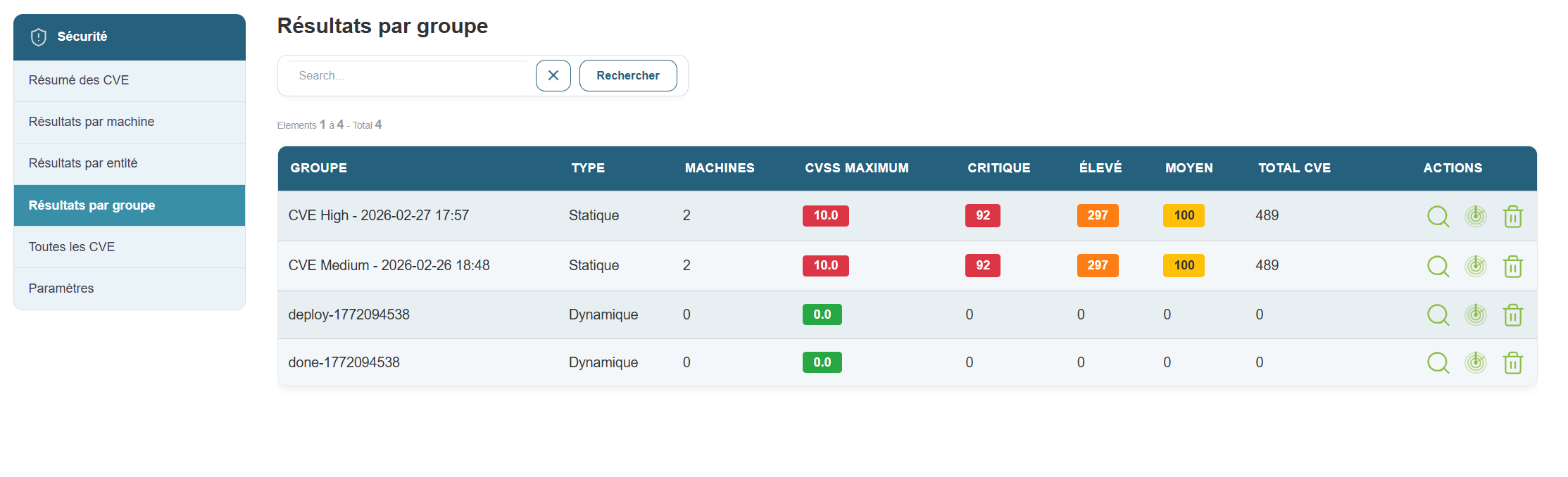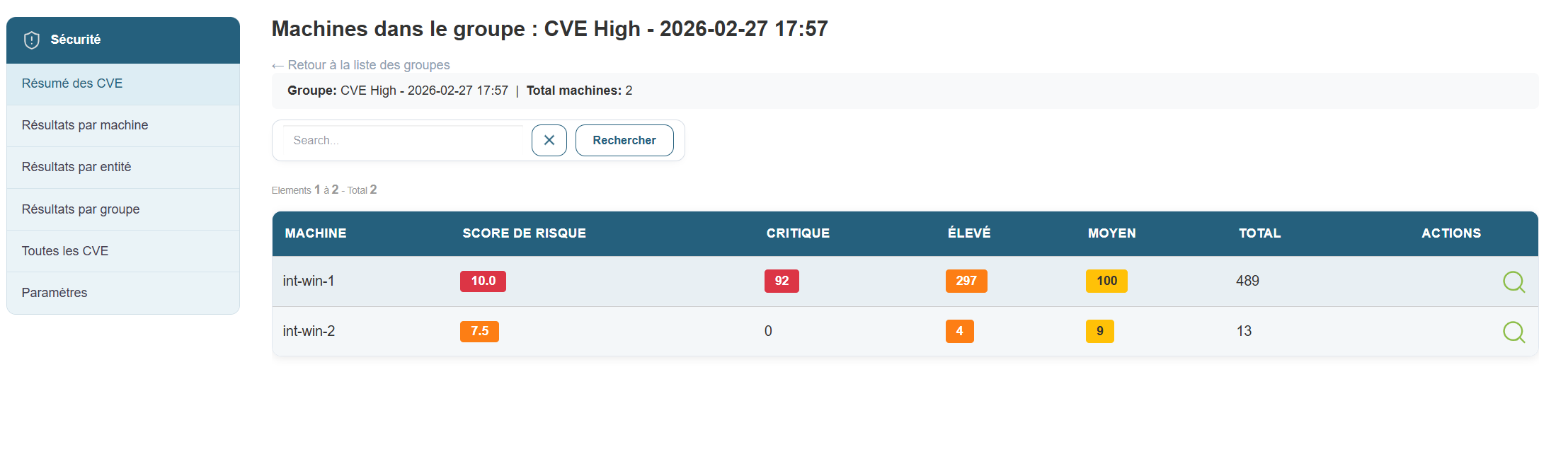 • Les 2 actions de vue détaillée et de lancement de scan sur un groupe.