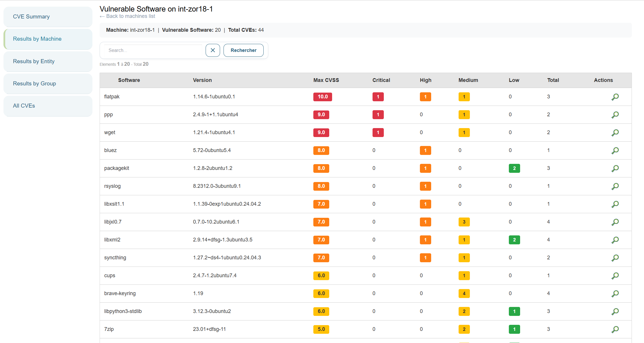 - Le total de CVE par machine