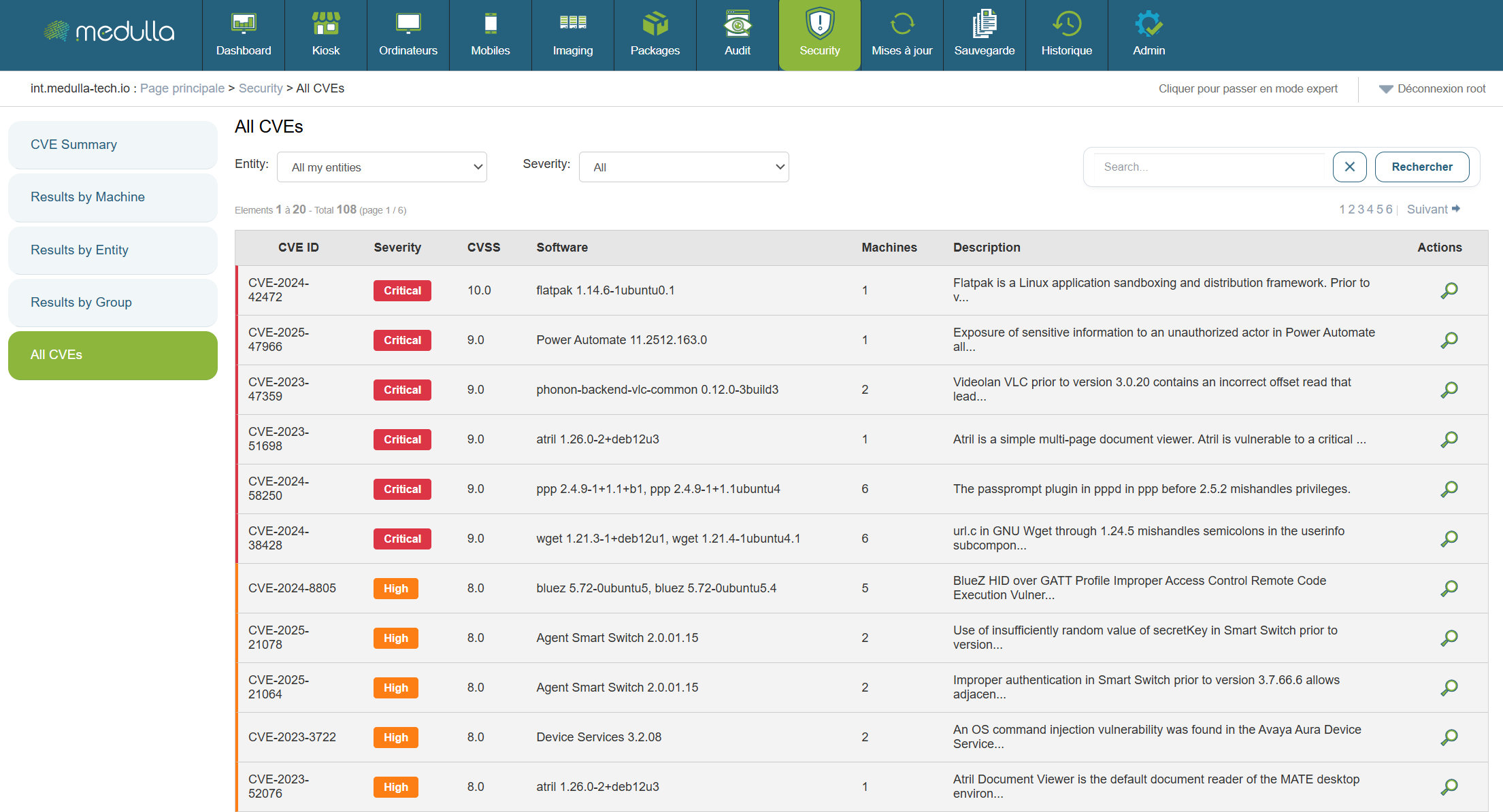 Ici on va retrouver l'ensemble des CVE et les informations suivantes: