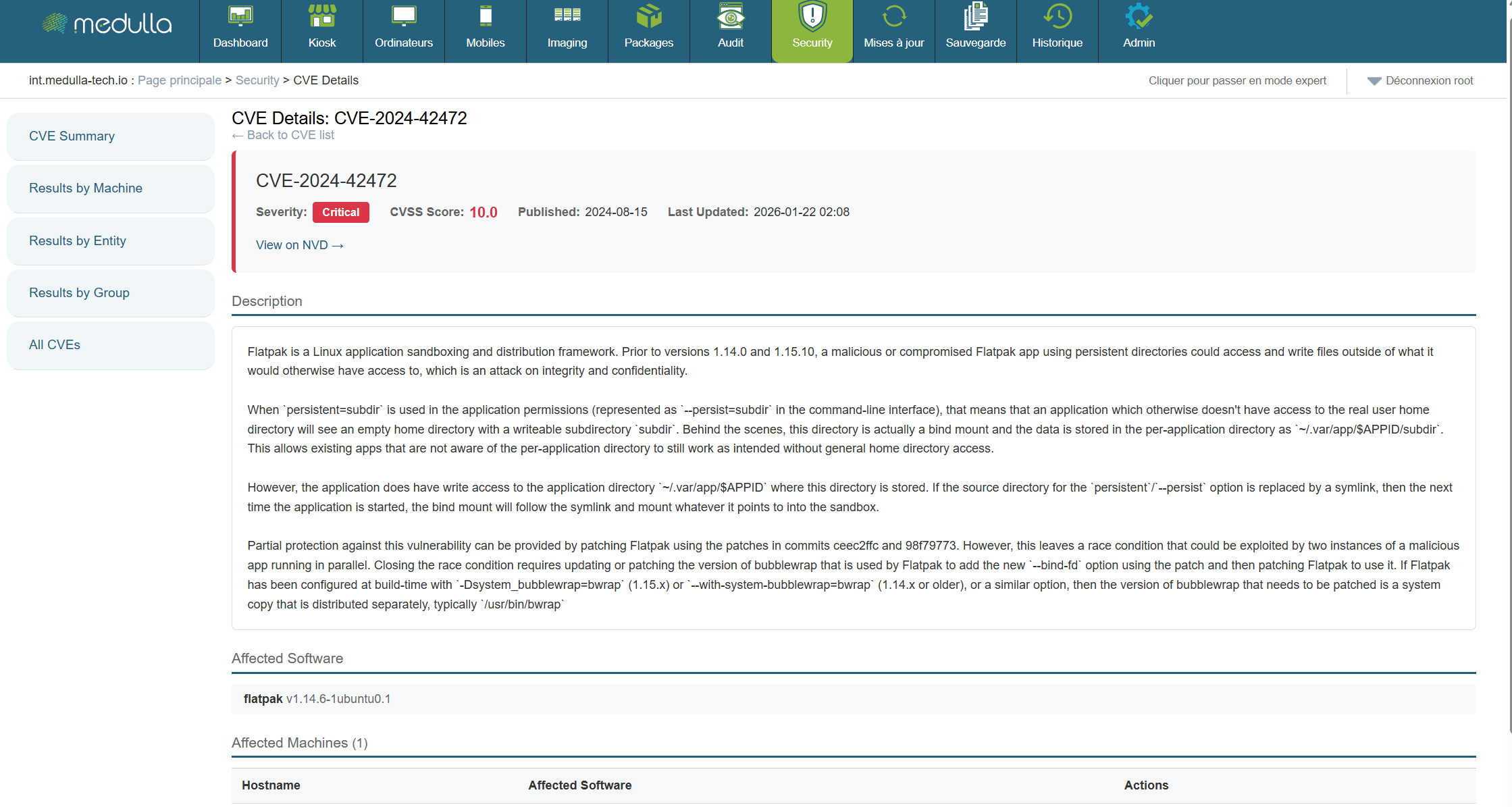 Quand on clique sur le detail on va retrouver la fiche CVE que l'on a vue dans la vue principal :