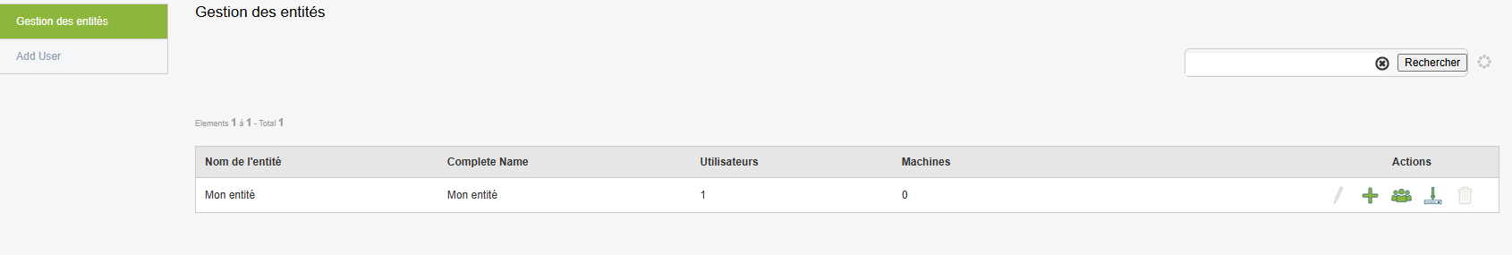 Une fois connecté dans votre interface, rendez vous dans le vue "Admin" > "Gestion des entités".