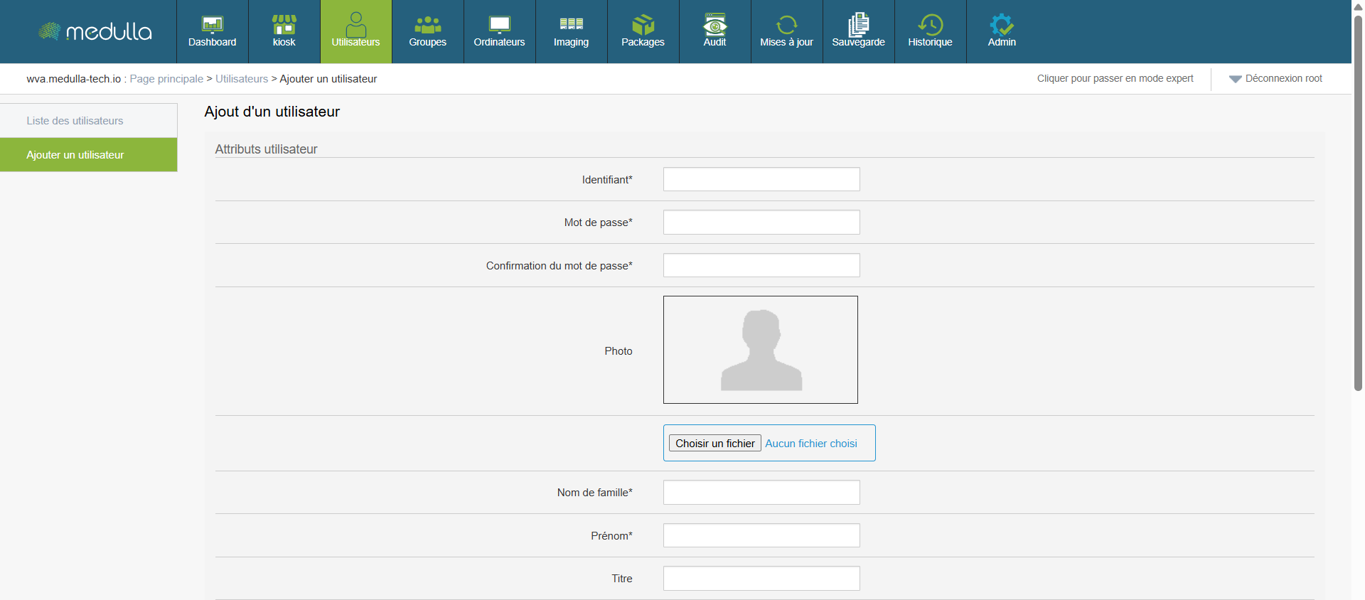 You will see acomplete list of modules and pages de Medulla, sorted by categories Users, Groups, Computers, Logs, Imaging, etc.