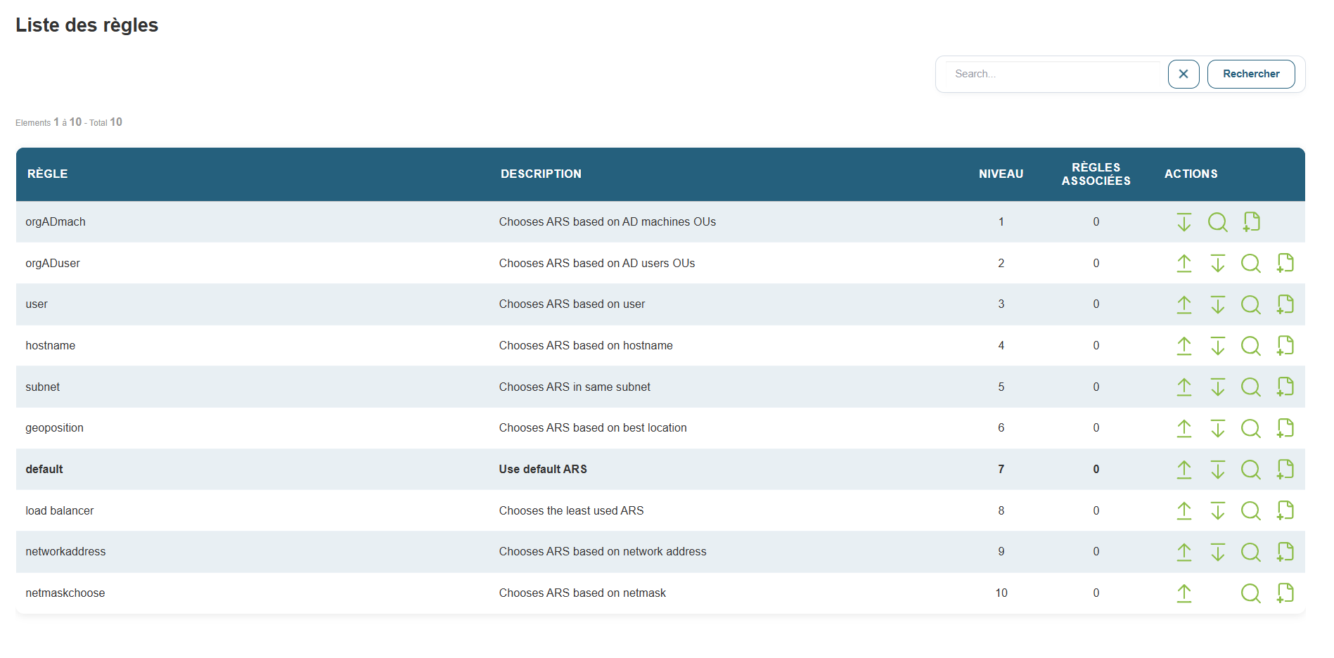 est l'option qui permet de choisir quels relais seront utilisés, le niveau de priorité de la règle ainsi que les dépendances entre elles et section permet aussi de créer de nouvelles règles.